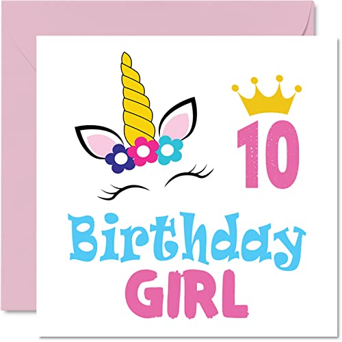 10:e födelsedagskort flicka – enhörnings födelsedagskort – grattis på födelsedagskort 10 år gammal flicka, flickors födelsedagskort för henne, 145 mm x 145 mm gratulationskort för dotter systerdotter barnbarn barn