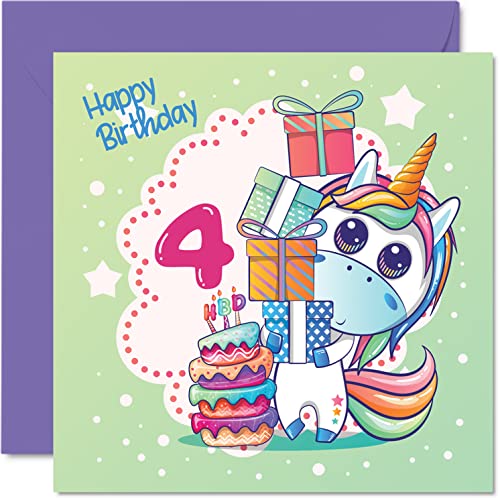 4:e födelsedagskort flicka – magisk enhörning födelsedagskort – grattis på födelsedagskort 4 år gammal flicka, flickors födelsedagskort för henne, 145 mm x 145 mm gratulationskort för dotter systerdotter barnbarn barn
