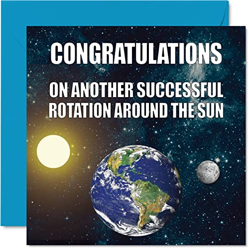 Roliga födelsedagskort för män kvinnor – jordrotation – skämt grattis på födelsedagskort för bror syster son dotter mamma pappa farmor farfar, 145 mm x 145 mm skämt humor gratulationskort 18 21 30 40:e födelsedagen