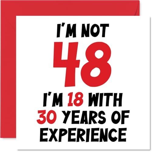 48:e födelsedagskort för kvinnor män – inte 48 jag är 18 med 30 års erfarenhet – roligt fyrtioåtta fyrtioåttonde grattis på födelsedagskort för mamma pappa bror syster, 145 mm x 145 mm humor skämt gratulationskort
