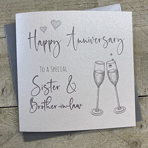 Vita bomullskort grattis på årsdagen handgjort kort till en speciell syster och bror med champagneglas, vit, BD77
