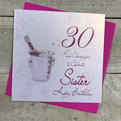 vita bomullskort rosa champagne, 30 för att fira syster grattis på 30-årsdagen, vit, WBA30P-S