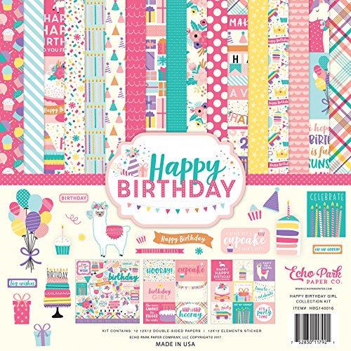 Echo Park Paper Företag Grattis på födelsedagen flicka kollektionssats, 30 x 30 cm