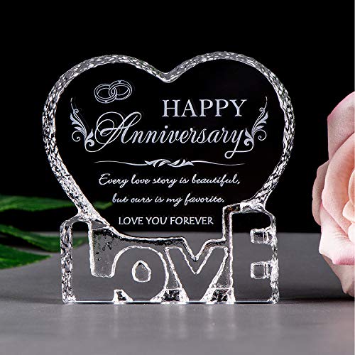 Movdyka årsdag bröllopsgåvor till henne honom par kristall kärlek hjärta figurer graverad text med grattis på årsdagen romantisk present till fru make