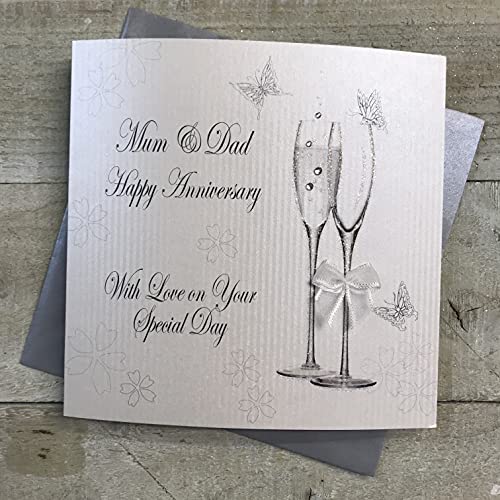 Vita bomullskort handgjorda grattis på årsdagen kort med kärlek på din speciella dag för mamma och pappa med champagneglas, BD194