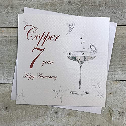 Vita bomullskort BD107C kupéglas grattis på årsdagen "koppar" 7 år handgjort jubileumskort, vit
