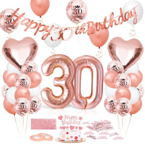 Ballong i roséguld för 30-årsdagen, födelsedagsdekoration 30 år, ballong 30-årsdagen, jättestor folieballong med nummer 30, folieballong grattis på födelsedagen 30, ballong 30 dekoration födelsedag