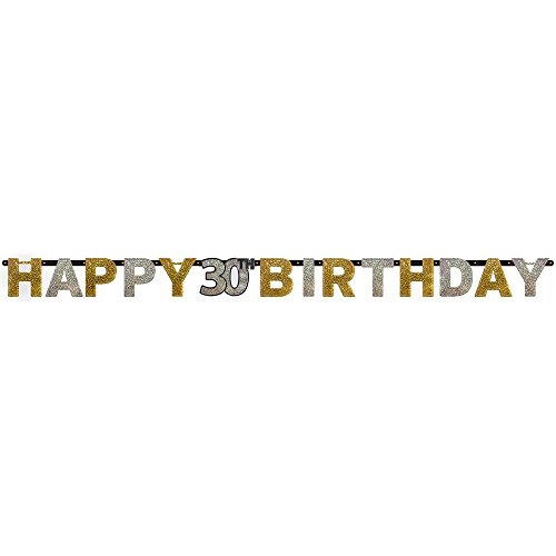Amscan 120207 2,4 m x 16 cm guld firande 30. Grattis på födelsedagen prismatisk bokstav Banner