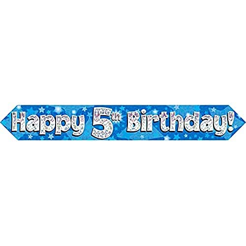 OakTree 62005 tum Grattis på 5-årsdagen folie holografisk banderoll, blå, 9 fot