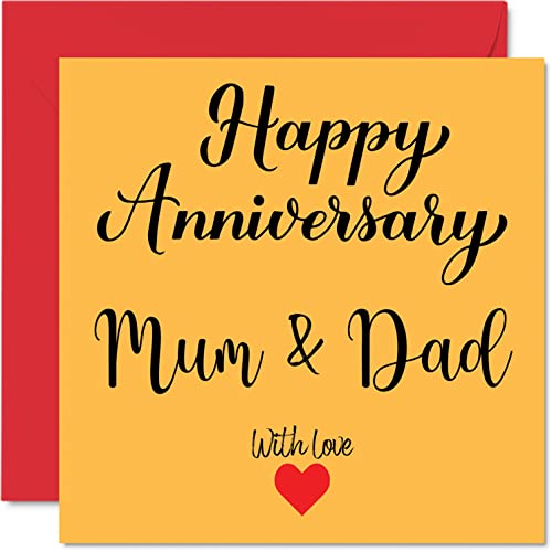 Sött jubileumskort för mamma och pappa – grattis på årsdagen – bröllopsdagskort för kvinnor män henne honom, 145 mm x 145 mm årsdag gratulationskort för föräldrar mamma mamma pappa
