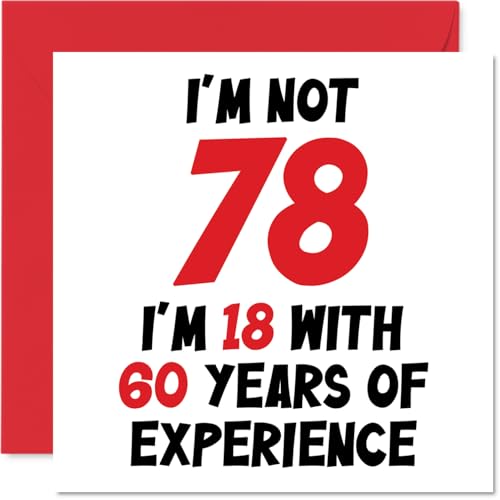 78:e födelsedagskort för kvinnor män – Not 78 I'm 18 With 60 Years Experience – roligt grattis på födelsedagskort för mamma pappa farfar mormor, 145 mm humor skämt gratulationskort