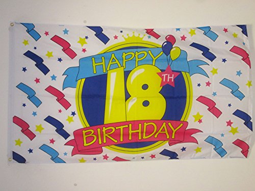 AZ Flag grattis på födelsedagen 18 år 90 x 60 cm - Happy Birthday Flag 60 x 90 cm - flaggor