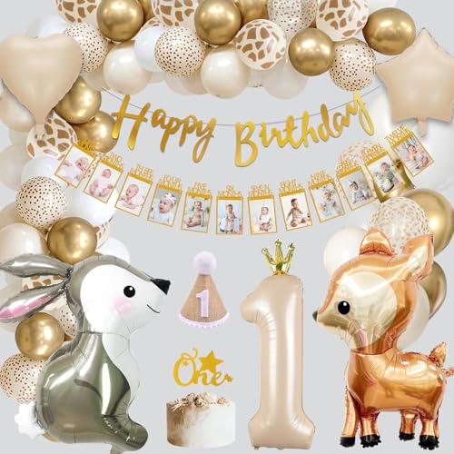 Ballonger för 1 års födelsedag, 1 års födelsedagsdekoration, för barn, första födelsedagen, barnkalas, beige, guld för 1 år, ballong med nummer 1, festgirlang, grattis på födelsedagen för barn
