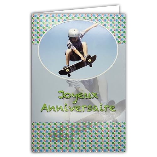 AFIE Grattis på födelsedagen kort glitter skateboard pojke barn tonåring med vitt kuvert 12 x 17,5 cm 67-1018/2