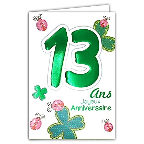 Ålder Mv 69-2013 Grattis på födelsedagen kort 13 år tonåring pojke flicka mönster lyckohållare nyckelpiga