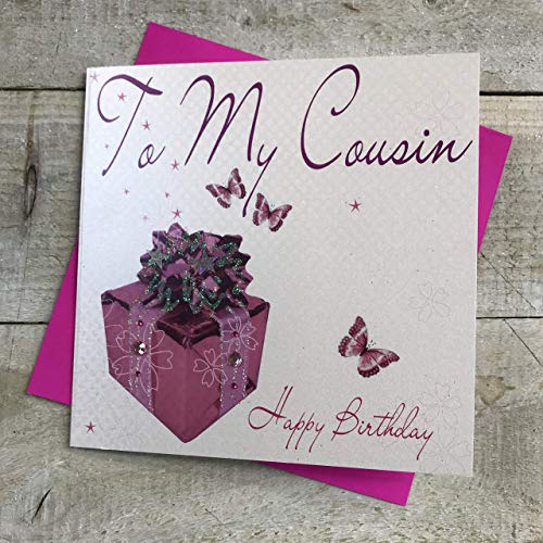 vita bomullskort present till min kusin grattis på födelsedagen handgjort kort, WB160