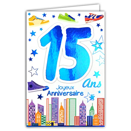 69-2115 Grattis på födelsedagen kort 15 år tonårspojke flicka - stjärnor sneakers