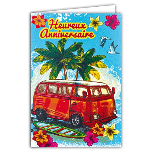 Grattis på födelsedagen kort - röd glans kombi VW Van Hippie bil surfa 69-4070