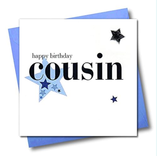 Claire Giles Hjärtan och stjärnor grattis på födelsedagen kusin kort – blå