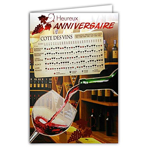 Grattis på födelsedagen rött glansigt kort med ett litet avtagbart kort för att lägga i en plånbok Bordeaux vinrivieran Bourgogne Rhône Alsace Loire