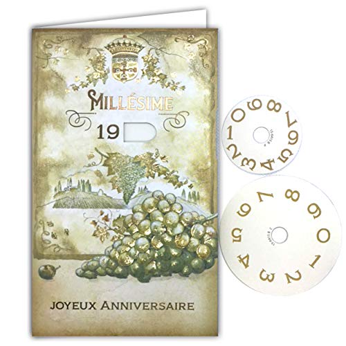 Afie Grattis på födelsedagen kort vintage födelseår justerbar från 1900 till 1999 pappersskivor, vinrankor, druvklass