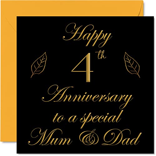 Speciellt linne jubileumskort för pappa mamma föräldrar – speciell mamma och pappa – grattis på 4:e bröllopsjubileumskort från Son Daughter Family, 145 mm x 145 mm gratulationskort för fjärde årsdagar