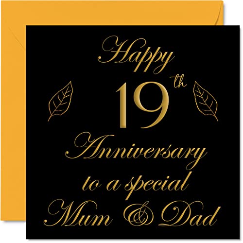 Speciellt 19-årsjubileumskort för pappa mamma föräldrar – speciell mamma och pappa – grattis på 19 bröllopsjubileumskort från son dotter familj, 145 mm x 145 mm gratulationskort för nittonde årsdagar