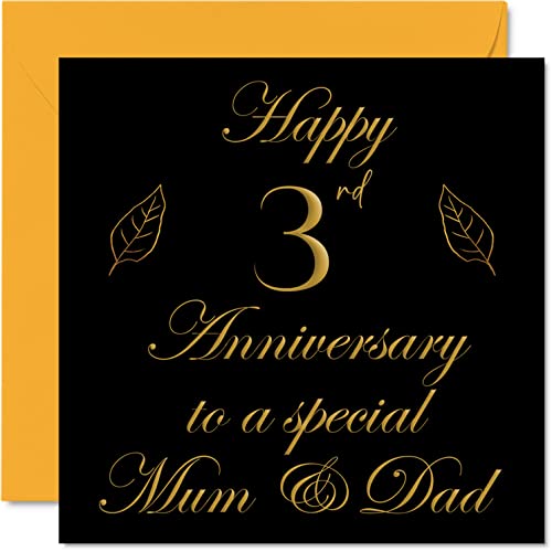 Speciellt läderjubileumskort för pappa mamma föräldrar – speciell mamma och pappa – grattis på 3:e bröllopsjubileumskort från Son Daughter Family, 145 mm x 145 mm gratulationskort till tredje årsdagar