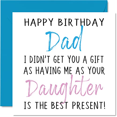 Roliga födelsedagskort för dotter från pappa – grattis på födelsedagen dotter ingen gåva – grattis på födelsedagskort från pappa far, dotter skämt födelsedagspresenter, 145 mm x 145 mm skämt humor gratulationskort för henne