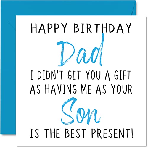 Roliga födelsedagskort för pappa från son – grattis på födelsedagen pappa ingen gåva – födelsedagskort från son, far oförskämt skämt skämt humor gratulationskort för pappa honom