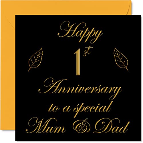 Specialpapper jubileumskort för pappa mamma föräldrar – speciell mamma och pappa – grattis på 1:a bröllopsdagskort från Son Daughter Family, 145 mm x 145 mm gratulationskort för första årsdagar