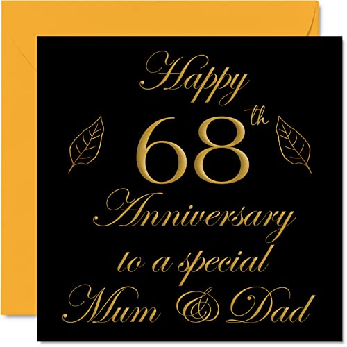 Speciellt 68-årsjubileumskort för pappa mamma föräldrar – speciell mamma och pappa – grattis på 68 bröllopsdagskort från son dotter familj, 145 mm x 145 mm gratulationskort för sextio-åttonde årsdagar