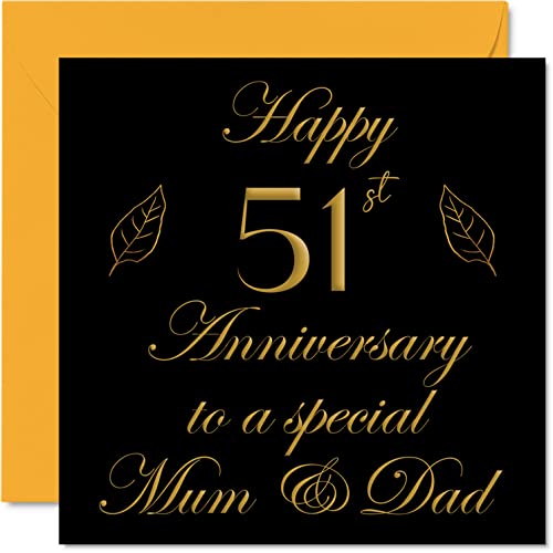 Speciellt 51-årsjubileumskort för pappa mamma föräldrar – speciell mamma och pappa – grattis på 51 bröllopsdagskort från son dotter familj, 145 mm x 145 mm gratulationskort till femtio-första årsdagar