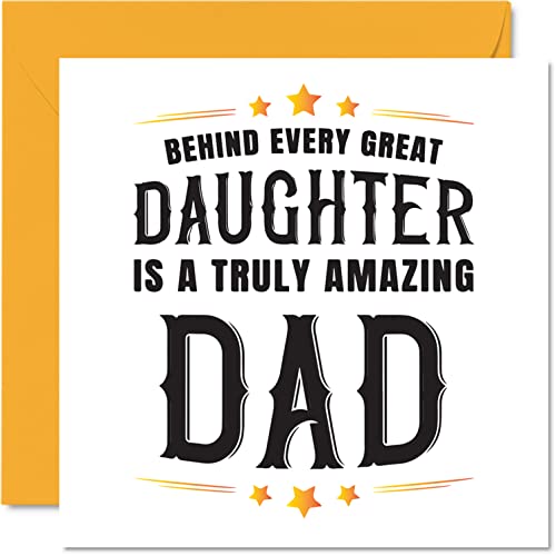 Söta födelsedagskort till pappa – bakom stor dotter fantastisk pappa – grattis på födelsedagskort från dotter far födelsedagspresenter, 145 mm x 145 mm sentimental fars dag gratulationskort present
