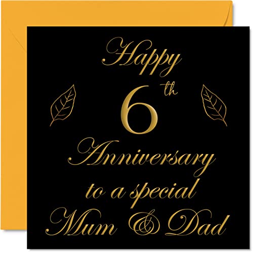 Speciellt järnjubileumskort för pappa mamma föräldrar – speciell mamma och pappa – grattis på 6:e bröllopsjubileumskort från Son Daughter Family, 145 mm x 145 mm gratulationskort för sjätte årsdagar
