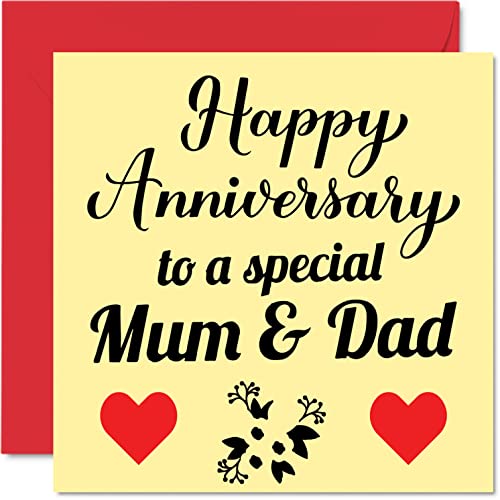 Sött jubileumskort för mamma och pappa – grattis på årsdagen – bröllopsdagskort för kvinnor män henne honom, 145 mm x 145 mm årsdag gratulationskort för föräldrar mamma mamma pappa