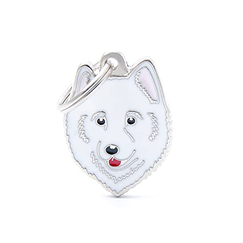 MYFAMILY Medalj för personlig hund i Italien, vitt ben, hundtallrik med gratis gravering, handledning i metall, klassisk samling, 20 x 20 mm
