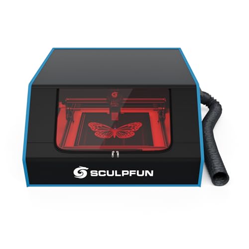 SCULPFUN S30 Laser graveringsmaskin med Automatisk Air Assist, 0,06 * 0,06 mm Ultrafin kompressionspunkt, 2-i-1 lasergraveringsmaskin och skärare för plywoodläder, 32-bitars moderkort