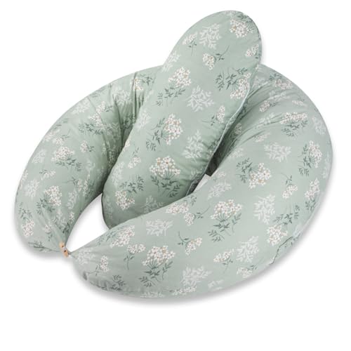 RED CASTLE, Amning/graviditetskudde, graviditetskudde, multifunktionella, lämplig för att sova/amma, stöd, avkoppling och optimal komfort, bomullsblomma, stor flopsy, linne