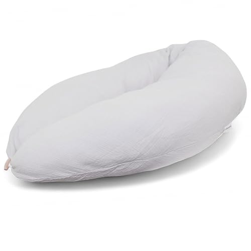 HOBEA-Germany Amningskudde 190 cm x 76 cm XXL Graviditetskudde Sidokudde med överdrag av ekologisk bomull (Muslin ljusgrå)