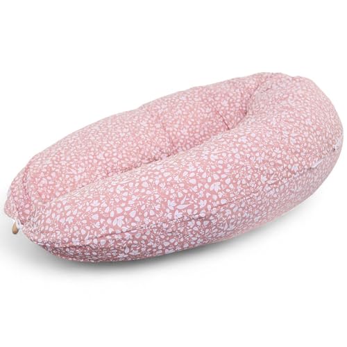 doomoo Graviditetskudde och amningskudde, kompis, ultrakomfortabel för sömn under graviditeten, lindrar rygg, ben och mage, organiskt och Oeko-Tex, blomrosa
