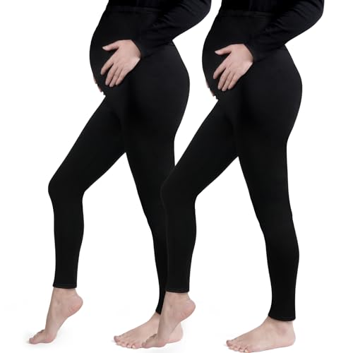 Aomig gravidleggings för kvinnor, stretchiga, justerbara graviditetsbyxor med hög midja, mjuka gravidleggings med hög midja (2PCS-L)