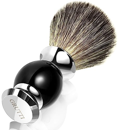GRUTTI Rakborste tillverkad av 100% äkta grävlingshår, handtag i metall, Rakborste för Män silver- för Våt Rakning