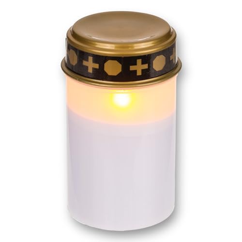 AROBA LED gravljus, sorgljus – flimmereffekt som äkta ljus – lång brinntid upp till 60 dagar – återanvändbart kyrkogård, minnesljus kontinuerligt ljus – vitt guld