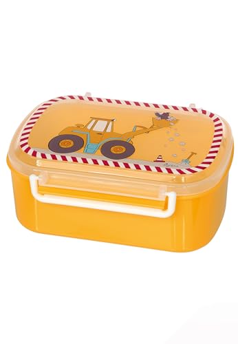 Sigikid 25267 matlåda Bodo grävmaskin, BPA-fri, säker, lätt, med strykförslutning, matlåda med insats – för brödtid, frukost, dagis, för barn från 2 år, gul/Bodo grävmaskin 17 x 11 x 7 cm