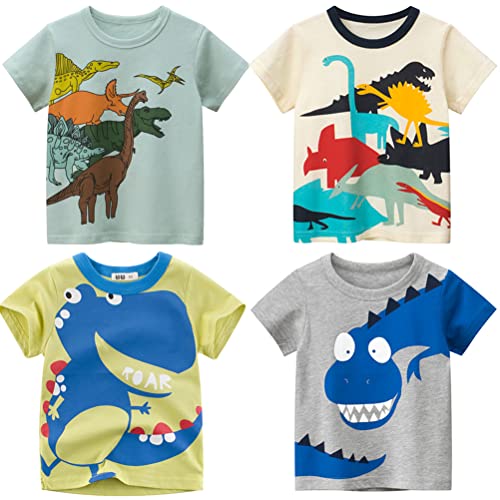 NautySaurs 4-pack småbarn, pojkar, t-shirts med dinosaurie, haj, grävmaskin, lastbil, grafisk, kortärmade t-shirts, 5 dinosaurie, 4 år