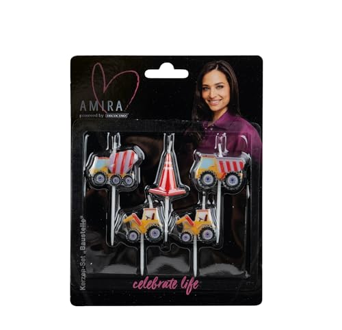 AMIRA drivs av decocino – ljusset byggplats 5 delar – perfekt dekoration för tårtor, muffins och kakor, födelsedagstårta, fest, pojkar, byggarbetsplats, grävmaskin, lastbil, laster, dekoration, ljus