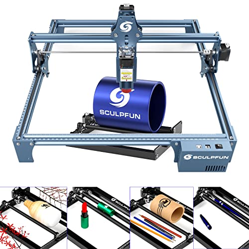 SCULPFUN S30 PRO Laser gravyrmaskin med automatisk luftassistent, B1-hölje, laserrotationsrulle, laserhonungskaka arbetsbord, 10 W utgångseffekt CNC skärning lasergravyr maskin för trä metall