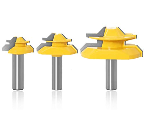 APlus 3 delar 1/2 tum 12,7 mm limfräs geringlimfräs överfräs 45 graders lås meder router bit träbearbetning fräs skärverktyg för gravyrmaskin trimmaskin