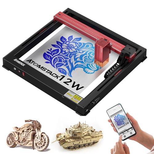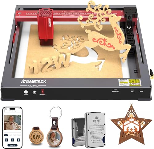 ATOMSTACK A12 Pro Laser gravyrmaskin, 12 W utgångseffekt, installationsfri, 0,05 mm högre noggrannhet, appkontroll laserskärare, lasergraverare för trä, läder, metall